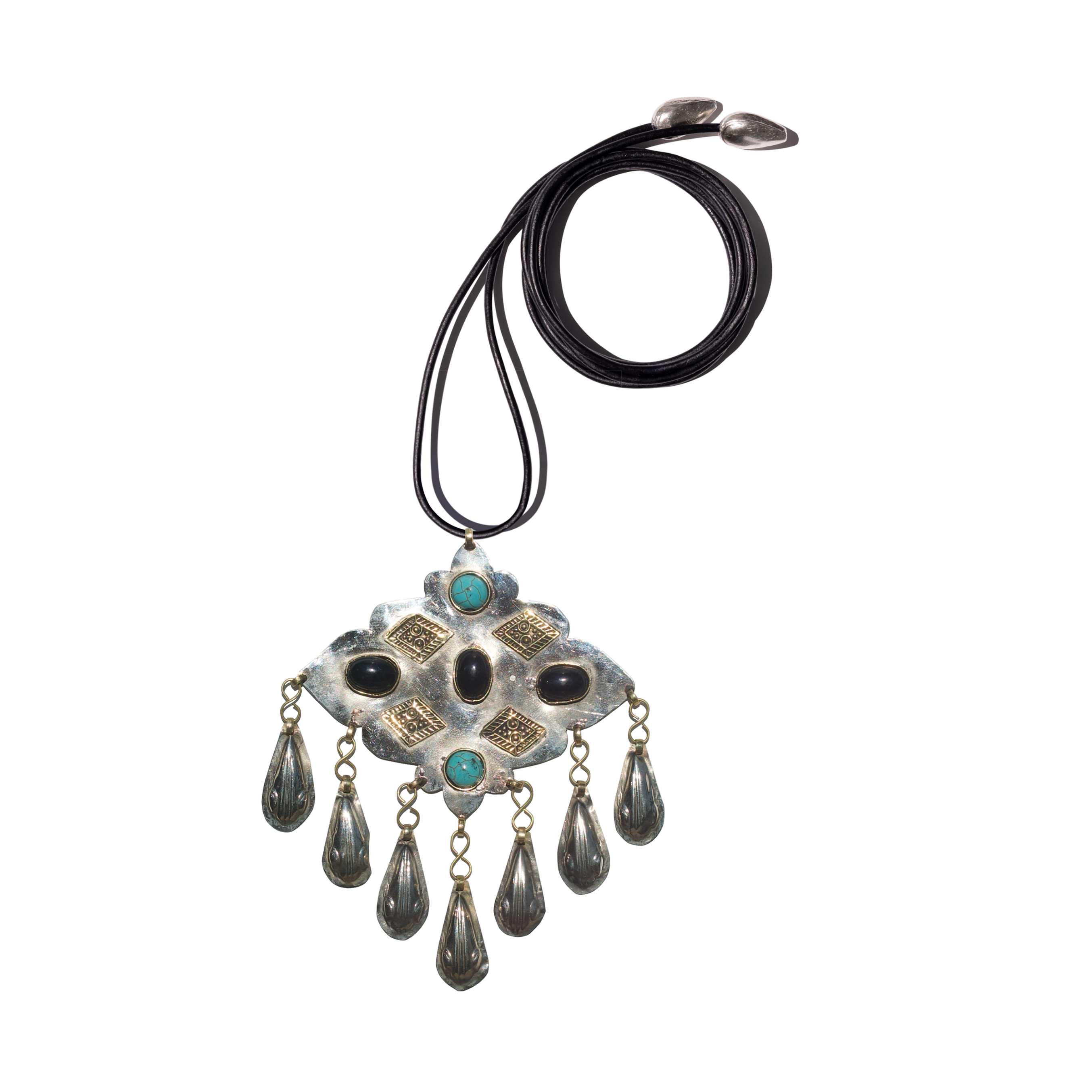 ONYX & TURQUOISE TEARDROP AMULET