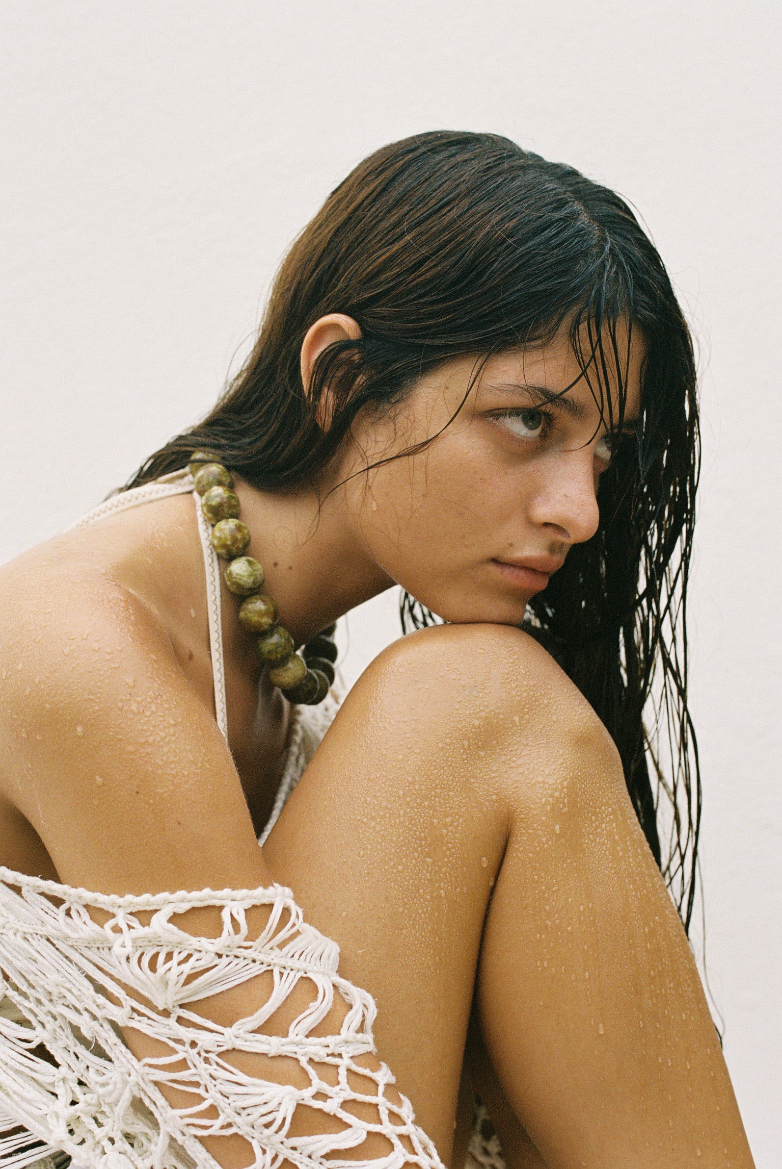 TO ENSURE LONGEVITY, AVOID CONTACT WITH PERFUMES, CREAMS, AND CHLORINE WHILE WEARING. IF NECESSARY, RINSE WITH FRESH WATER AND LAY FLAT TO DRY, OUT OF DIRECT SUNLIGHT AND EXTREME HEAT.